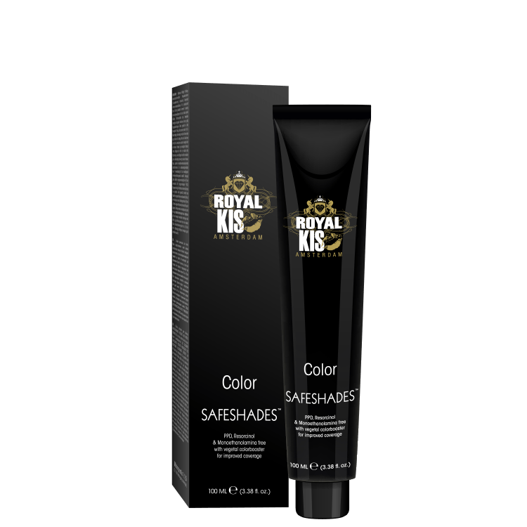 Royal KIS SafeShades is een nieuwe generatie permanente haarkleurcrème met Color Connect Technology en Vegetal Keratin Technology. Langer houdbaar, beter dekkend, garandeert de mooiste haarkwaliteit en is safe. Royal KIS SafeShades biedt de perfecte harmonie tussen wetenschap en natuur. De milde, uitgebalanceerde formule bevat tot 25% lipiden en verzorgende ingrediënten, en is vrij van PPD en resorcinol. Dankzij de minimale hoeveelheid ammonia (maximaal 1% bij mengverhouding 1:1,5) wordt het gewenste effect bereikt en toch de vereiste mildheid behouden. Dit garandeert perfecte kleurresultaten zonder compromissen, door de huid en het haar volledig te respecteren.